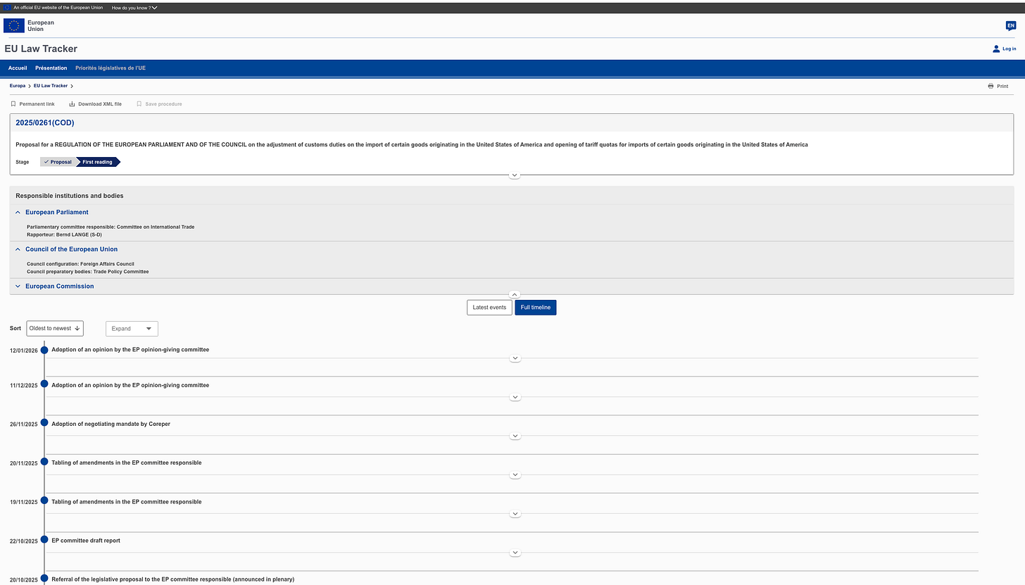 L’état d’avancement de la procédure peut être suivi via https://law-tracker.europa.eu/procedure/2025_261?lang=en